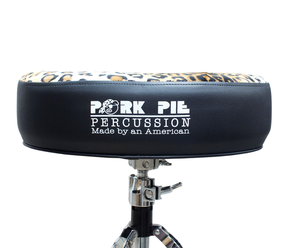 Pork Pie Big Boy Drum Throne Black with Leopard Top inc. Base